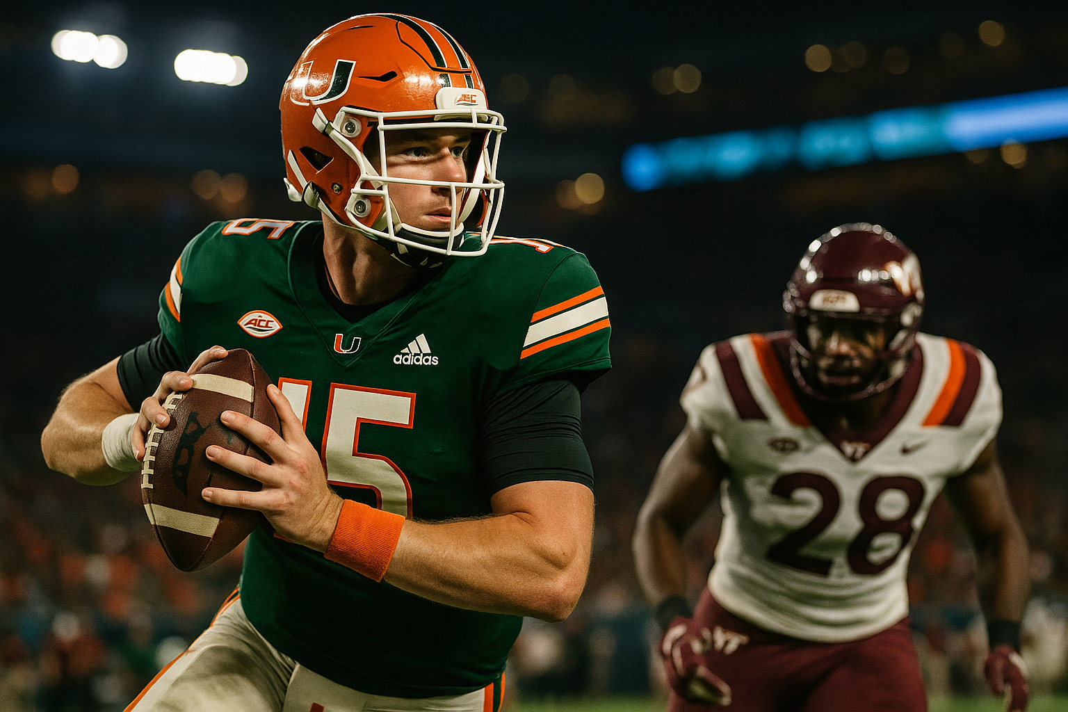 इस सप्ताह की शून्य में सनसनीखेज प्रदर्शन करते हुए, मियामी हरीकेन्स ने वर्जीनिया टेक को 34-17 से मात देकर अपनी अटलांटिक कोस्ट कान्फ़्रेंस (एसीसी) चैम्पियनशिप की उम्मीदों को जीवित रखा है। खिलाड़ी कार्सन बेक ने अपनी कुशलता से सभी का…