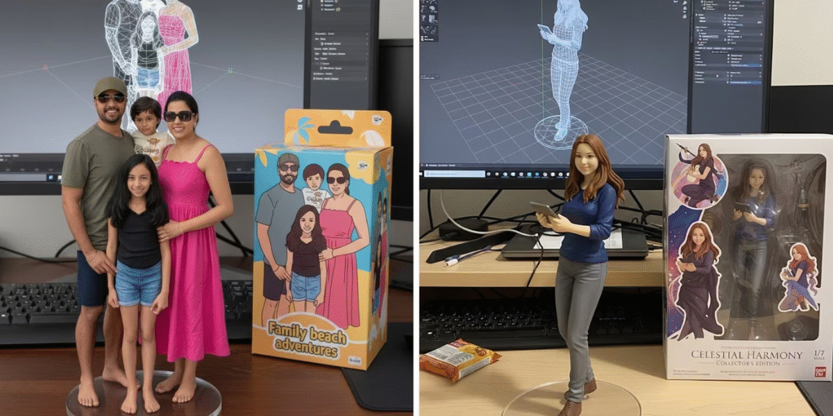 • 3D Figurines: लोगों की सेल्फी को छोटे “खे́लौने-मॉडल” (miniature figures) की तरह बनाने का ट्रेंड भी जोर पकड़ रहा है — स्टैंड, पैकेज बॉक्स और अच्छा लुक दे कर।