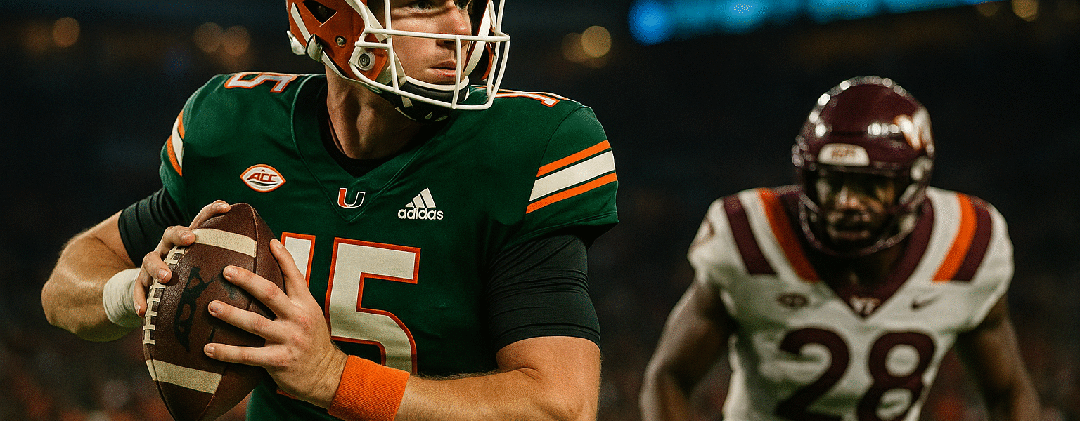 इस सप्ताह की शून्य में सनसनीखेज प्रदर्शन करते हुए, मियामी हरीकेन्स ने वर्जीनिया टेक को 34-17 से मात देकर अपनी अटलांटिक कोस्ट कान्फ़्रेंस (एसीसी) चैम्पियनशिप की उम्मीदों को जीवित रखा है। खिलाड़ी कार्सन बेक ने अपनी कुशलता से सभी का ध्यान खींचा, उन्होंने अकेले ही 320 यार्ड्स और चार टचडाउन पासेस के साथ खेल में महारत हासिल की।